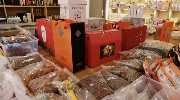 背靠长白山余脉的三道沟镇,山林资源丰富,孕育了珍贵的山野食材。凉拌刺五加清爽开胃,略苦回甘的叶片嚼劲十足;清炒山芹菜清香扑鼻,嫩脆的口感中带着山野的清新;雨后山林采摘的野生榛蘑炖土鸡香气四溢,榛蘑吸收了土鸡的鲜味,汤汁金黄浓郁;再配上一杯五味子蜂蜜水酸甜可口,椴树蜜的醇厚与五味子的微酸完美融合,解腻开胃;此外,山核桃、松子、榛子等坚果,也成为近年来的热门零食。